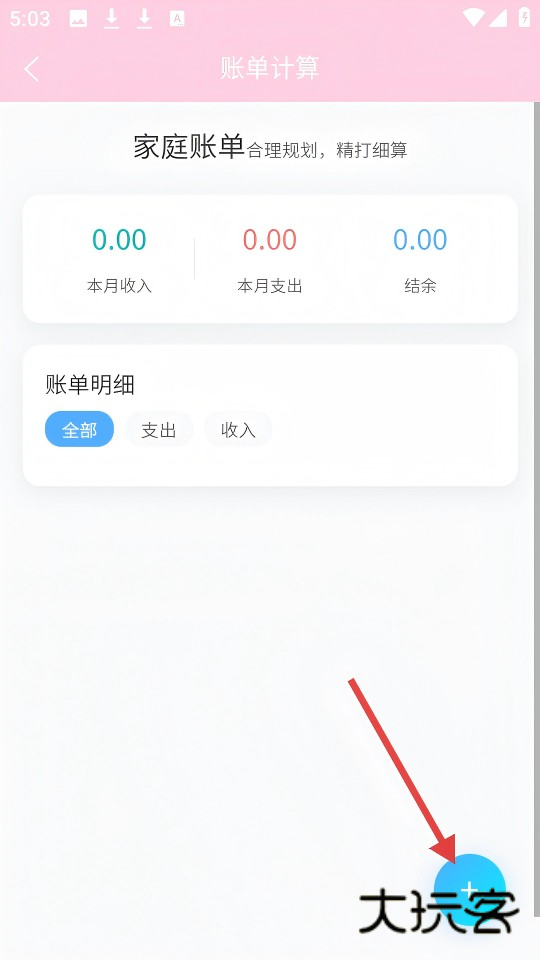 2、在【账单计算】页面,点击右下角蓝色【+】按钮,打开新增账单的界面。