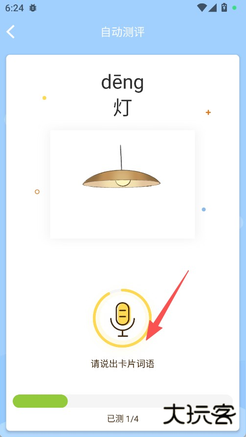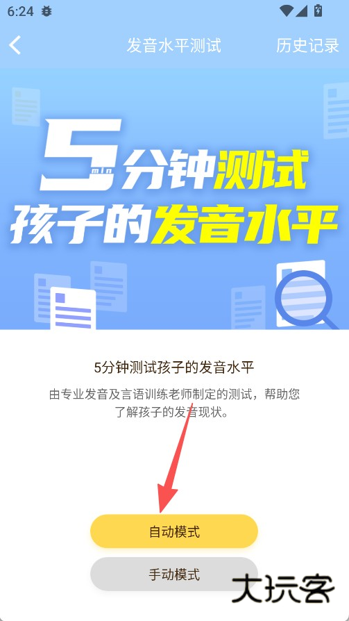 3、即可开始5分钟的发音水平测试,了解孩子发音现状。