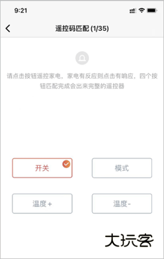 4、匹配加点,将遥控器对准家电点击按钮,四个按钮都要匹配完成;