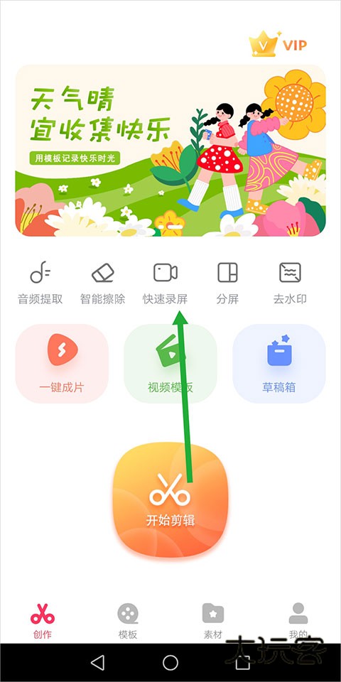 1、用户进入快剪辑中点击【快速录屏】;
