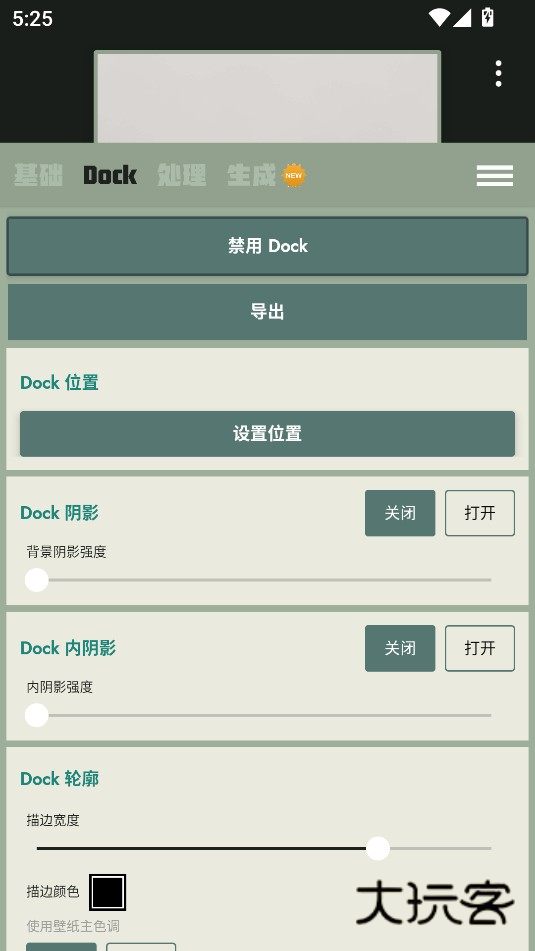 3、往上滑动屏幕下方的部件,可以设置Dock的外观样式