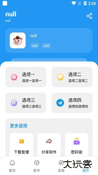 4、个人中心板块中可以查看下载管理,设置密码锁,还能分享软件。