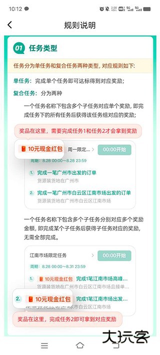 任务周期内,完成从指定区域出发的订单,即记为此单达标,如任务需要完成多单,则完成对应单数后记为任务完成。