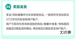 奖金/司机套餐作为非实物类奖品,一般将在任务结束后3个工作日内发放到用户账户