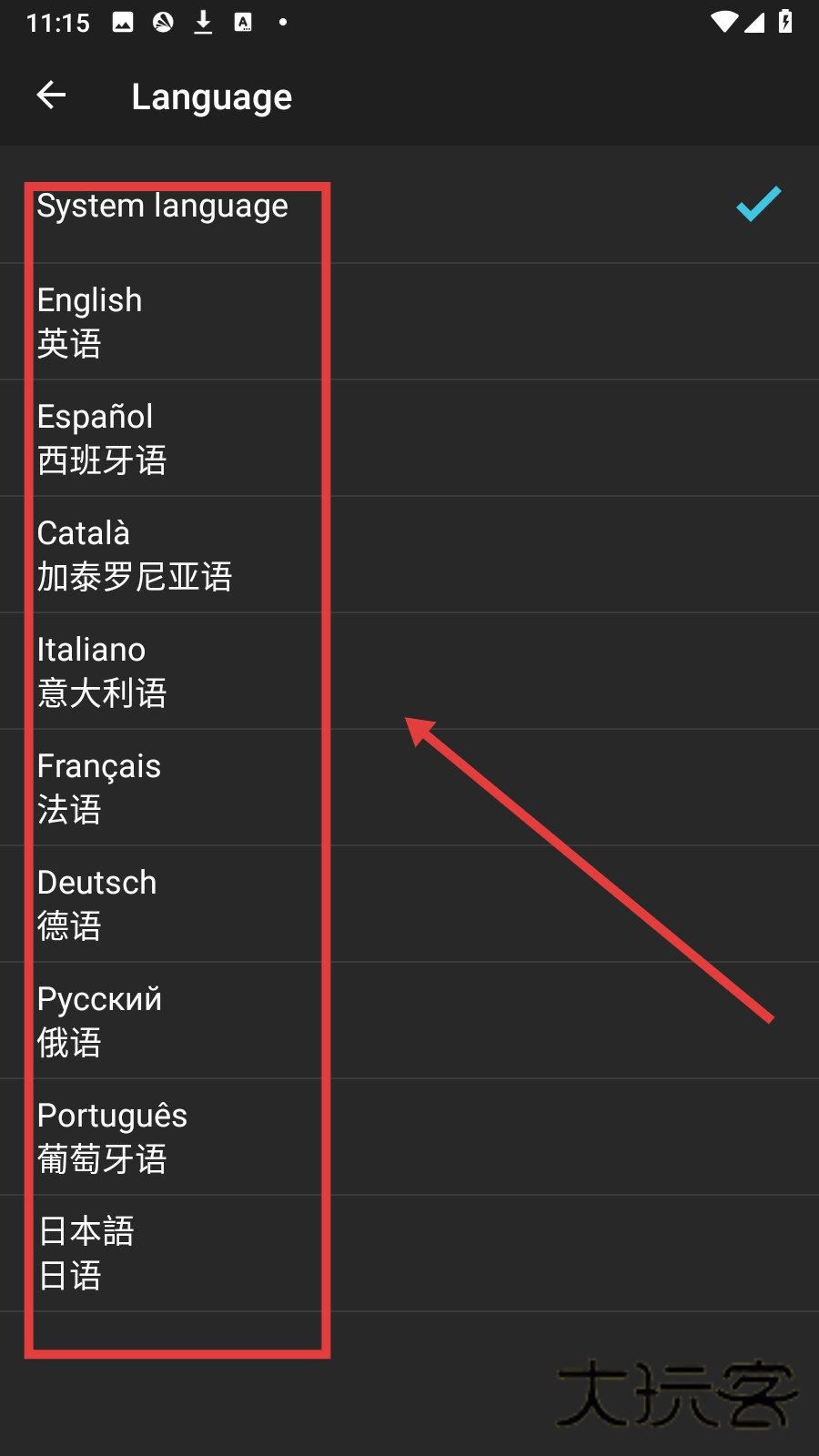 4、在语言设置页面【选择语言】,即可切换应用语言。
