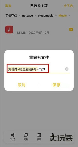 4、然后将文件重命名为。mp3格式即可。