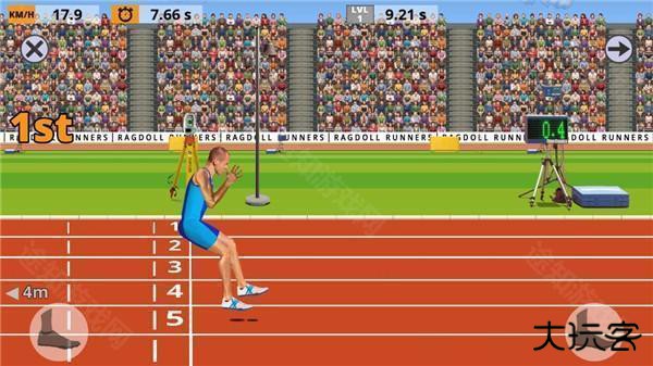 2、根据游戏中的障碍物或者运动时机进行有节奏的按键,并且在物理引擎的条件下控制好方向。游戏中主要操控运动员的两条腿,每条腿都会有一个按钮。