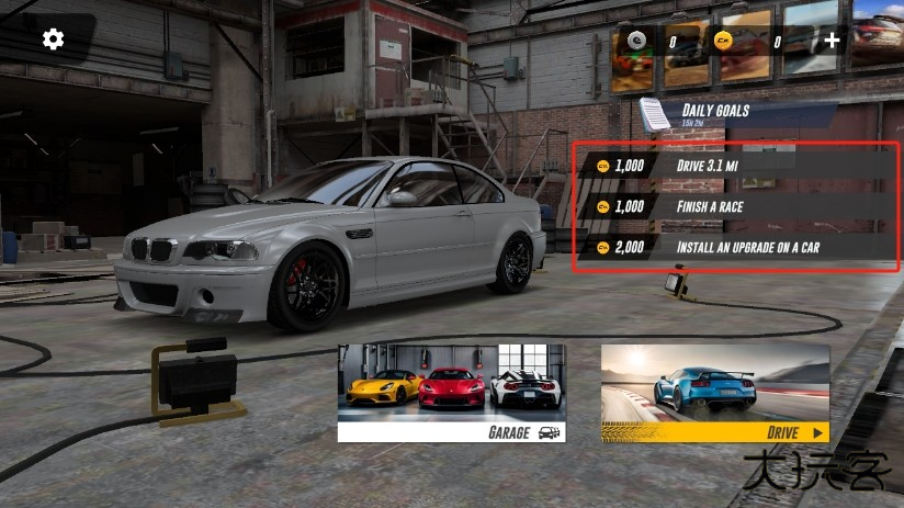 6、赶紧把日常任务清了呗。第一个任务容易得很,开车到指定速度就行。第二个是比赛任务,得把车开到地图上标志的那个指定地点才算开始