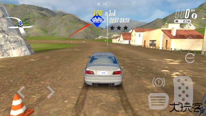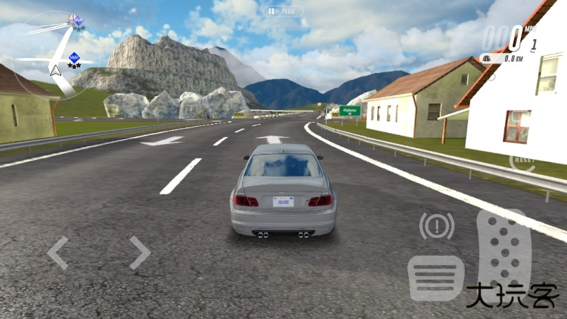 4、想开车了?猛戳【DRIVE】就对了!左边那个控制方向盘的,管左右转向;右边那个负责油门和刹车。瞄一眼左上角,那是周围的路况地图;右上角跳动的数字,就是你当前的车速了