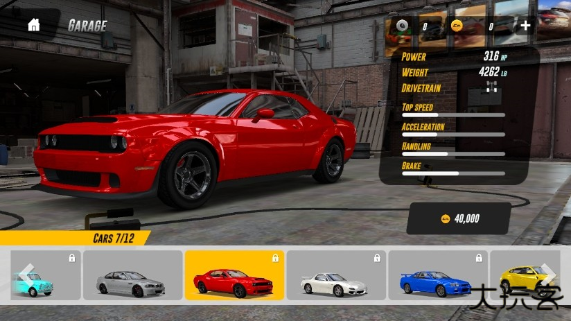 2、点【GARAGE】(车库)看看!里面塞满了各式各样的车,攒够闪亮的金币,遇到喜欢的就赶紧买下来吧