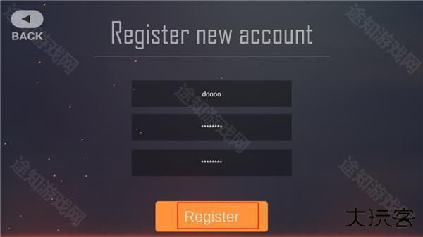 2、输入用户名和两遍密码,玩家可以任意输入名字和密码;