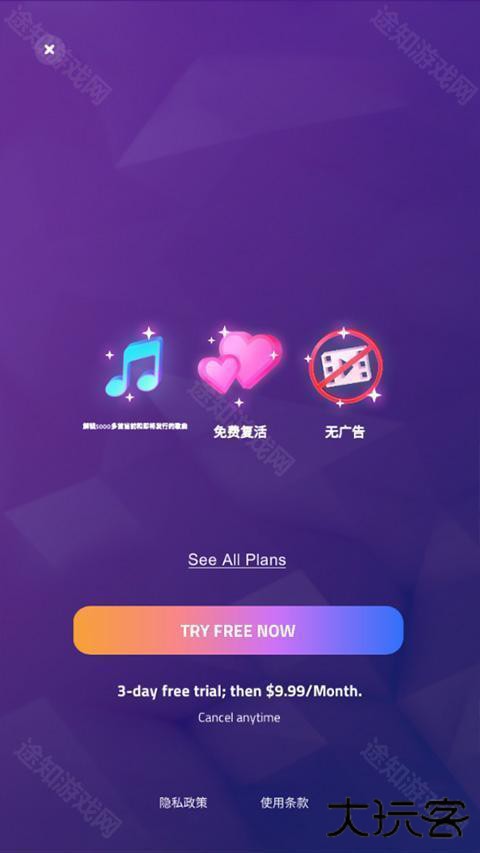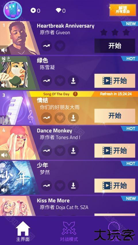 3、点击右上角的解锁所有歌曲就可以进入试玩其它歌曲,试玩后可以进行购买