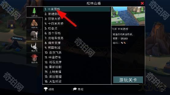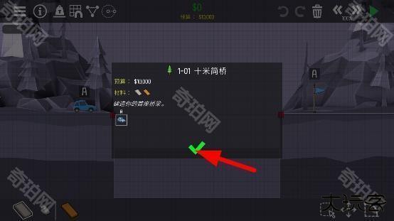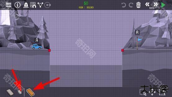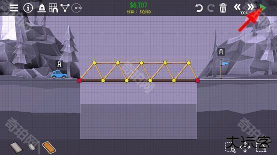 6、然后就是选择这里的材料来搭建你的桥即可但是要记得材料是有限的。