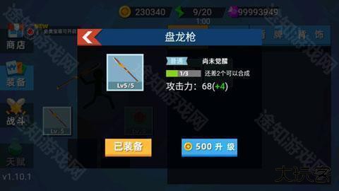 等级可用金币升级,另外抽到装备时选择看广告可以直接升级到5级。