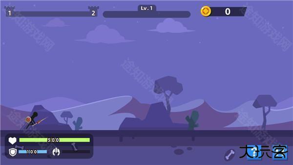 然后就是目标:这里的目标就是尽可能的保持血量,最快速的击杀敌人来让自己走的更远,期间每一次的升级都会赋予你一项特殊能力,而且击杀敌人还有机会获得加血补给和金币。