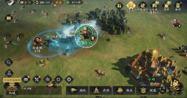 2.战场地形将直接影响战局走向。弓兵可据守高地形成火力网,骑兵需绕行险峻地形,河流峡谷成为天然屏障...善用地利优势,让每场战斗都充满战术变数。