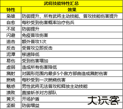 ①技能特性分类武将技能除不同伤害类型外,还存在各类技能特性: