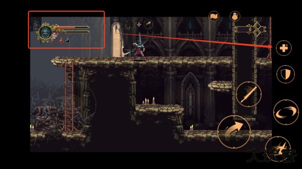 4、当生命力低下时点击“+”号可以使用药瓶恢复生命力。