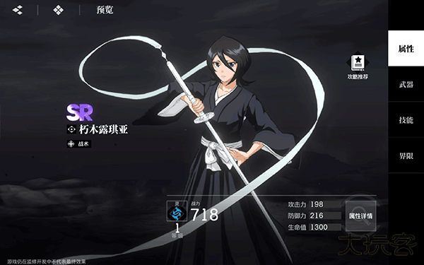 朽木露琪亚(SR):冰系控制核心,大招「无垠之境」冻结敌人并触发增伤,被动「冰结」对目标完成限制,适合高难度副本。