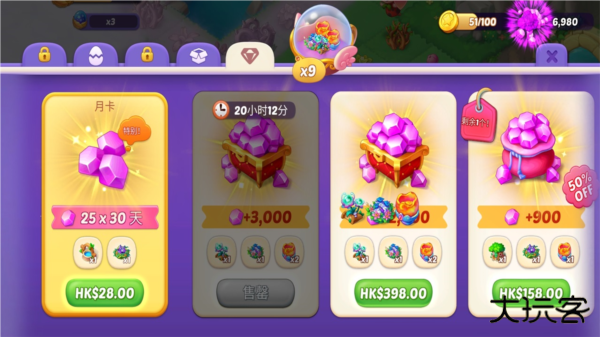 4.策略合并:玩家可以组合和管理资源,升级建筑物和道具的等级,制定更有效的冒险策略。