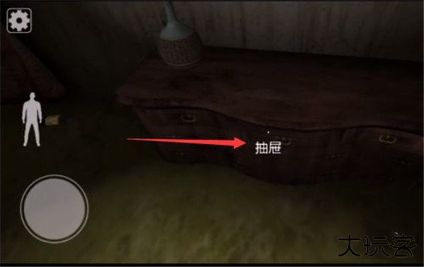 人物睁眼,优先到正前方抽屉中收集线索,从屏幕右侧楼梯往上走。