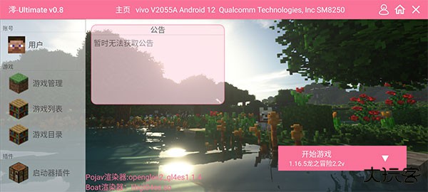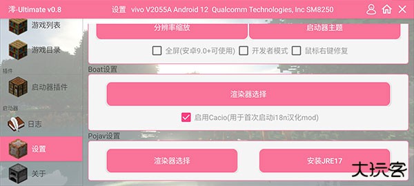 4、运行1.17+需要使用g14es1.1.5或者virgl,点击【设置】,下滑找到【渲染器选择】,点击g14es1.1.5。