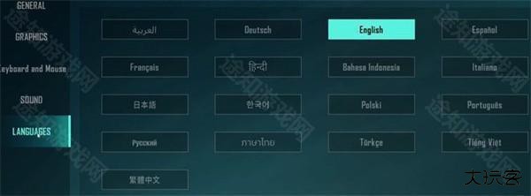 3、进入游戏设置界面,找到语言设置选项(最后一个,默认是英文:languages)。