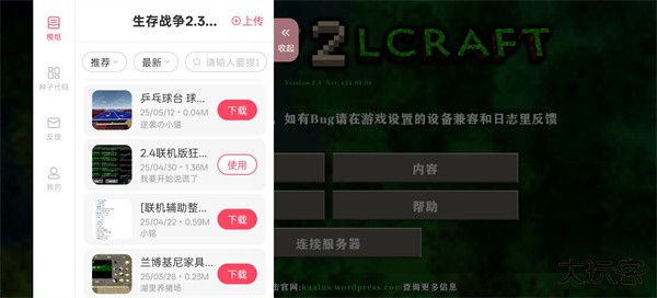1、进入游戏内点击弹窗,在模组这里搜索2.4联机模组下载。