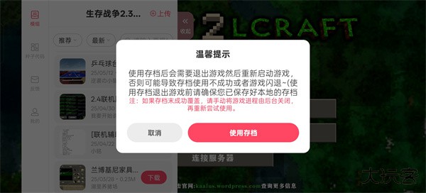 2、然后点击使用存档,这里会覆盖我们以往的存档。
