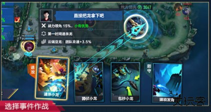 5、当双方队伍因事件卡在战略点遭遇,就将触发团战。在团战中,你将指挥选手发动英雄技能,对敌方进行打击。而当特定选手选到他的招牌英雄时,还能展示出更加强大的技能效果,惊艳全场。
