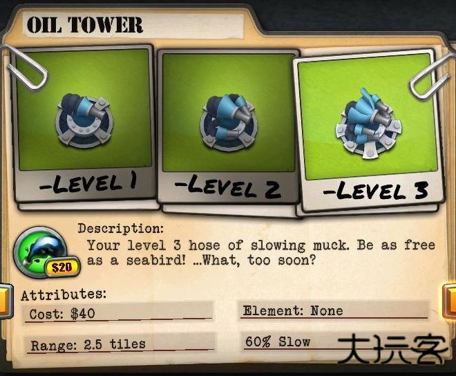 对于迟缓炮塔类而说,攻击范围是一个非常非常重要的指标。因为只有它的作用范围越大,才能更好的服务于攻击类炮塔。原油炮塔也是如此,虽然攻击范围有所提升;但是其迟缓效果实在欠佳,而且价格也很高