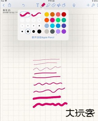 4、画笔给出了两种选择,分别是钢笔(圆珠笔)和马克笔。画笔粗细支持12个尺寸,颜色支持32种,虽然不能自定义颜色,但给出的都是比较实用和好看的,也省去了用户选择困难症的烦恼。