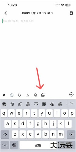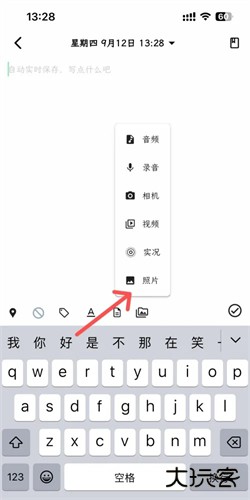 2、在笔记界面键入文字,可以添加图片、录音或视频,使笔记更加生动。