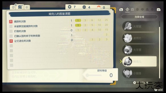 4.捕捉成功后,我们的图鉴研究课题可以提升,解锁新的进化路线。