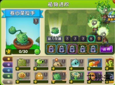 5、卷心菜投手,向前方僵尸抛出卷心菜造成伤害,种植需要花费100阳光,技能效果为抛出大量卷心菜对僵尸造成伤害