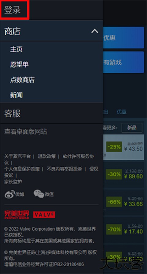 1、打开steam蒸汽平台手机版,然后点击左上角三条横杠的图案。