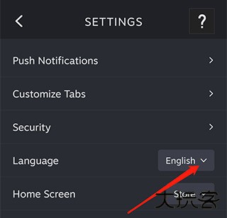 3、往下滑动,找到“language(语言)”选项并点击它;