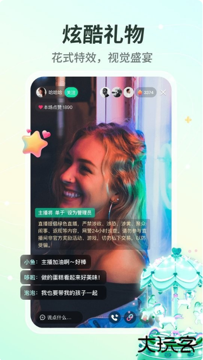 2、直播互动是其核心功能,支持弹幕聊天、打赏及多人连线,确保流畅的社交体验。
