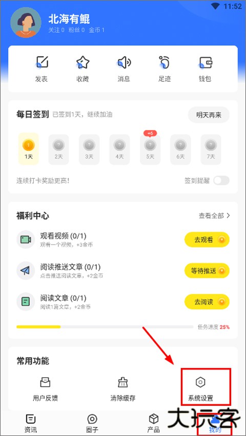 1、打开太平洋电脑网手机版,即太平洋知科技,首先点击右下角“我的”,然后点击“系统设置”;
