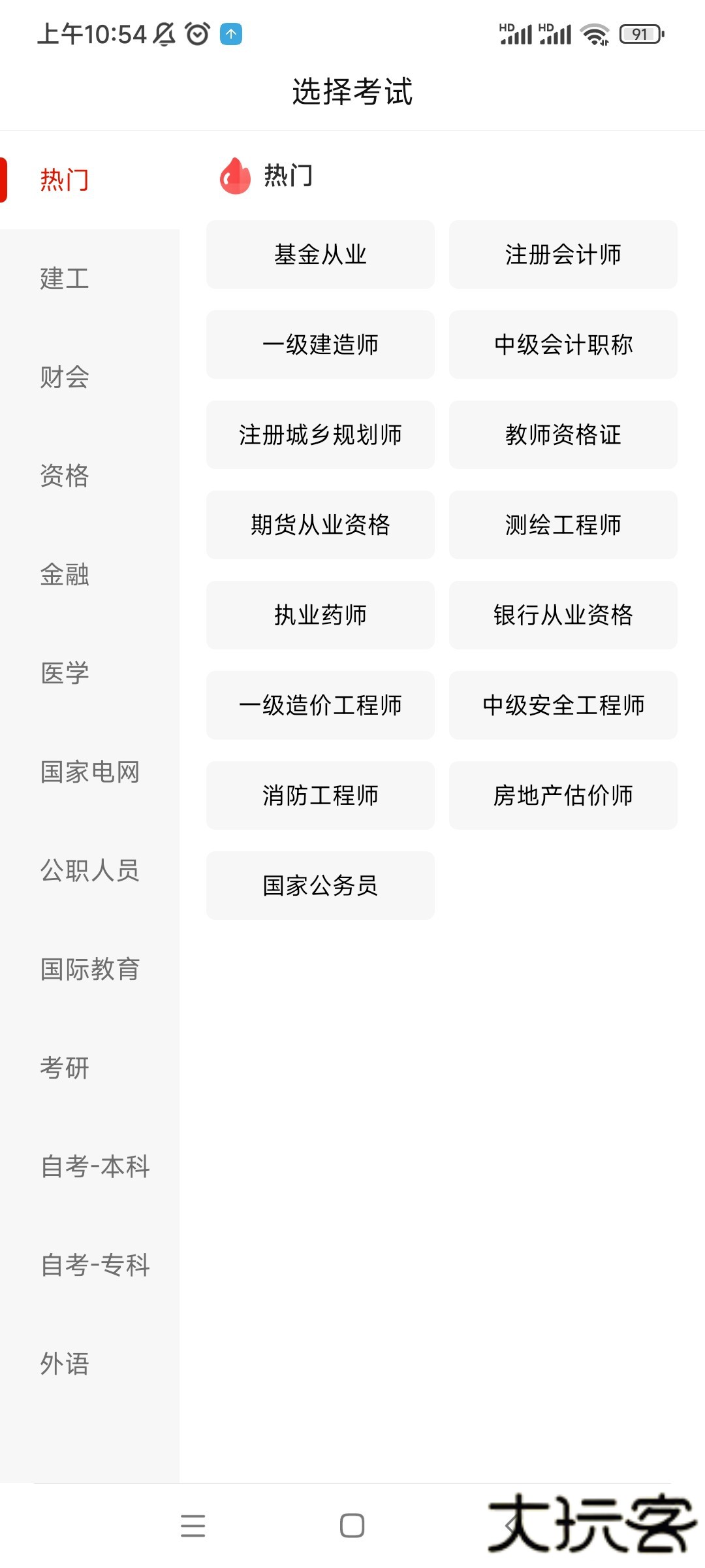 1、启动准题库app,用户将看到主页面,其中展示了所有可供选择的考试科目。