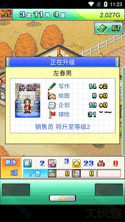 好的杂志离不开记者属性,第一次招聘完成之后还剩下1100。这些钱不要浪费,700培养一次,300培养一次,用来堆那个属性最高的人。培养结束后会出现资金困难,秘书送给你2000。加上剩下的100,2100还可以用700的培养3次。直到把钱花光,我们可以开始创建杂志啦!第一次可以选择河岸钓鱼或者商店街购物或者广场躲避球,因为这三个都是具有比较好的相性。当然也可以使用其他搭配,具体参考相性表。推荐使用广场躲避球的组合,因为初始读者群是少男少女,躲避球可以面向儿童与学生,有助于提高销量。