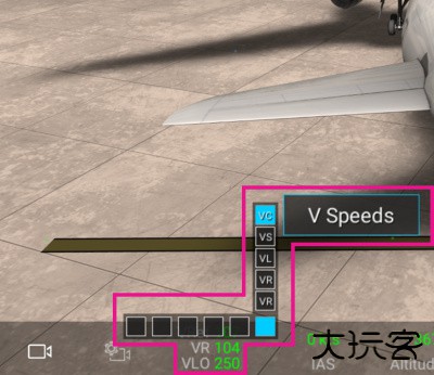 按下可伸出/收回起落架。确保 IAS(指示空速)低于“VLO”(最大起落架操作速度),以便延长它。