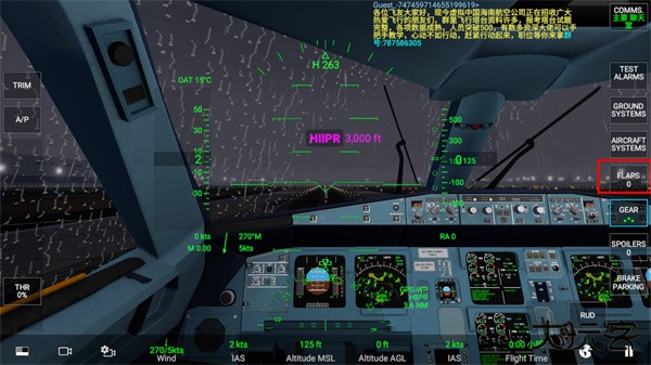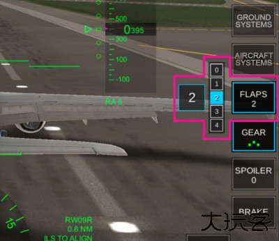 3,校正角度后,默认进入飞机机尾的视角,首先需要调整襟翼。按住右侧的FLAPS,选择第一级。