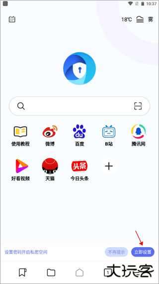 1、在暗盒浏览器手机版注册登录软件账号以后,点击下方的立即设置按钮。