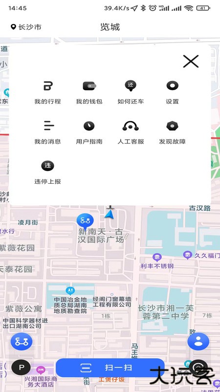 5、到达目的地后,将车停入指定停车点并手动关锁,系统会自动结算车费。