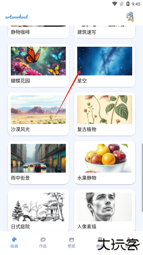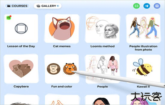 artworkout包含大量教学课程,范围从基础线条、三视图训练到油画颜色叠加与书法笔法。课程分难度排列,新手可从简单涂鸦开始,进阶用户可学习结构与色彩技巧。课程步骤清晰,可随时暂停与重学,适合系统提升绘画能力。
