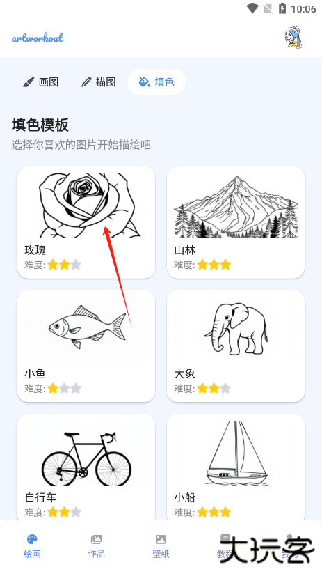 2、然后选择喜欢的图案进入绘画页面
