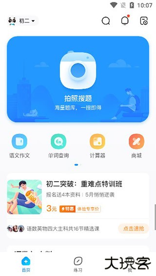 3、在首页当中,我们可以看到一个非常实用的拍照搜题功能;