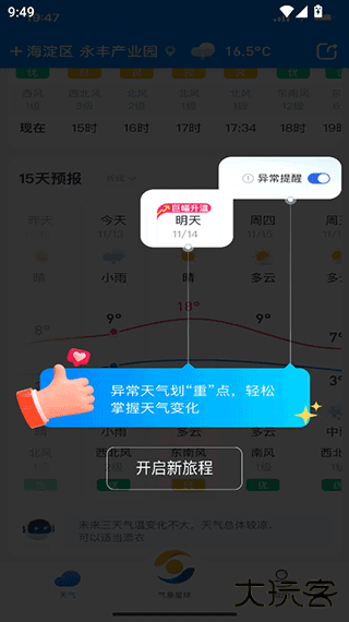 4、异常天气提醒功能可以让用户早点发现天气的突变