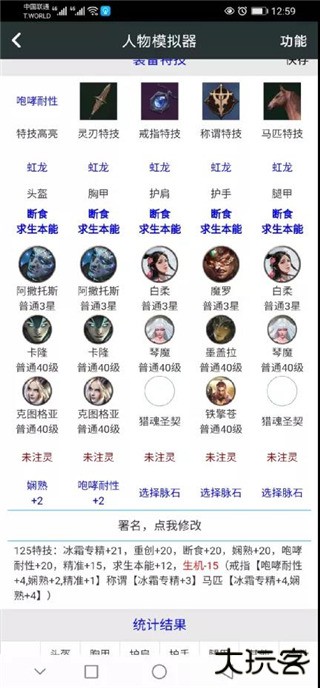 (初期配置的重铸、项链、羁绊、专精等数据均为计入。)
